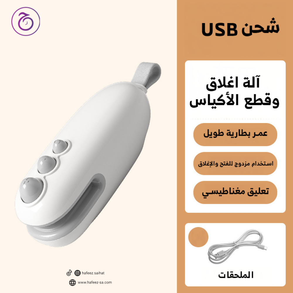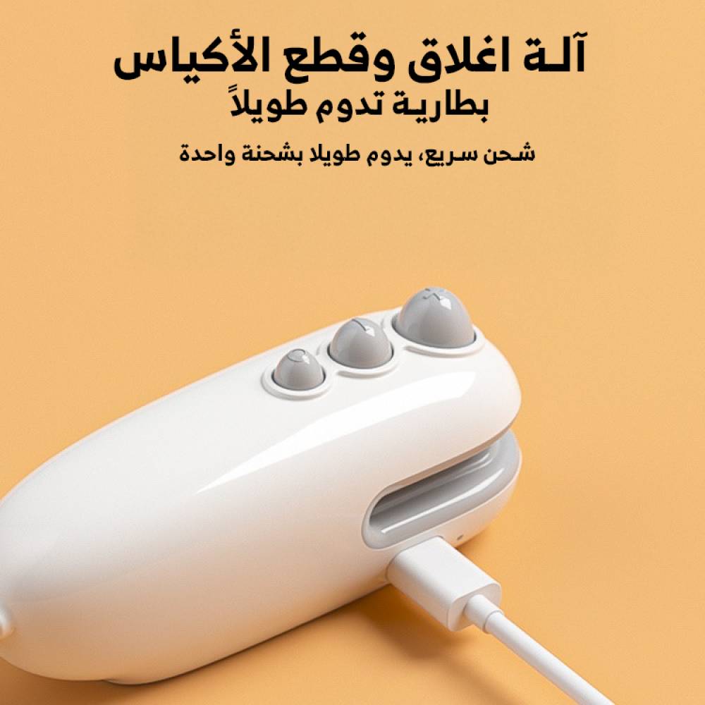 - متعددة الاستخدامات: تستخدم لقطع الأكياس وإغلاقها بإحكام لمنع دخول الهواء والحفاظ على نضارة الطعام.